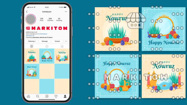 این قالب آماده کاور هایلایت اینستاگرام شامل 4 طرح خاص با ترکیب رنگ های کرمی و آبی است که به شما کمک می کند پروفایل اینستاگرامی تان را به یک نمای زیبا و حرفه ای تبدیل کنید تا فالوورهای بیشتری را جذب کنید و به آنها نوروز را تبریک بگویید. این طرح دارای تنوع است.